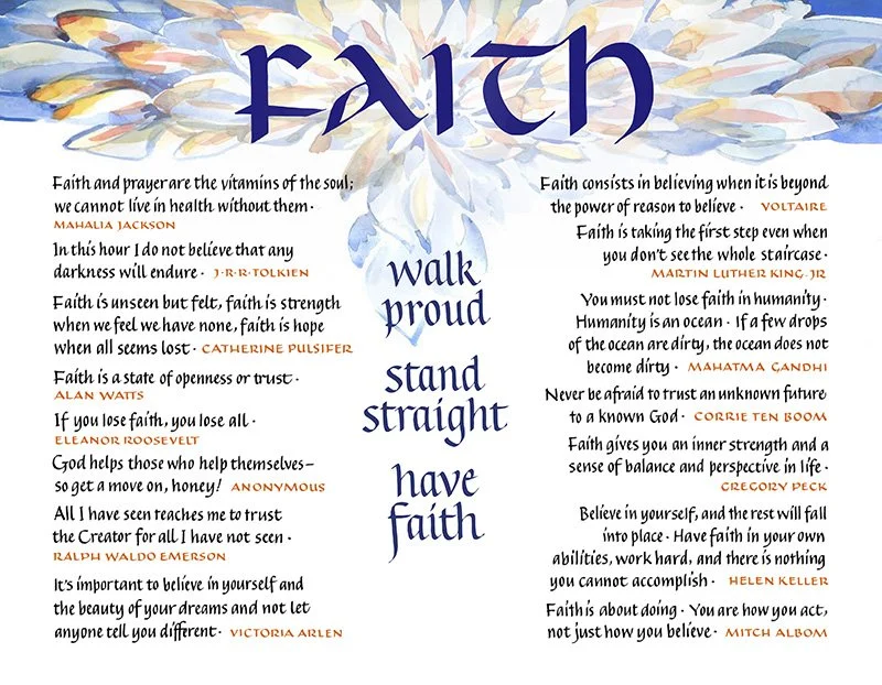 Text quoted is from Bill Kenney, co-founder of The Positive Edge, illustrated with an oak leaf and acorn and calligraphy design by Ann Miller.